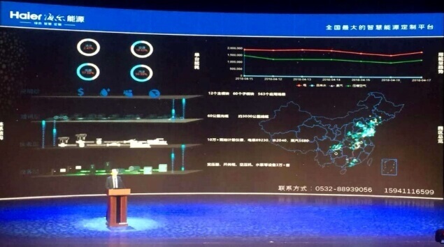 海尔智慧能源大数据互联控制中心,让海尔集团能耗设备的运行数据、环境数据、电网数据等各种指标一目了然。通过该大数据中心236个能源运营模块、15类预警模块实时掌握全国15个园区、55个互联工厂的各项数据。系统在对能源生产、传输和使用环节中存在的浪费等问题进行及时的显差并观察解决,同时通过能耗预测模块,能够精准地预测下一年度的能耗数值,为工厂提供了强有力的支持。